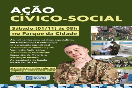 O Parque da Cidade do bairro Jardim Polastri recebe com entrada gratuita sábado, 1º, a Ação Cívico-Social da Academia Militar das Agulhas Negras (AMAN), em parceria com a prefeitura.